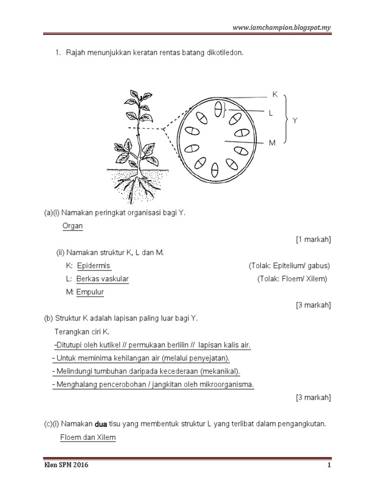 Keratan ini dibuat sepanjang 10-15cm beserta dengan 2-3. M K Lm y N Antara berikut yang manakah mewakili K L M dan N. Antara bahagian A B C dan D yang manakah mengangkut air dan ion mineral.