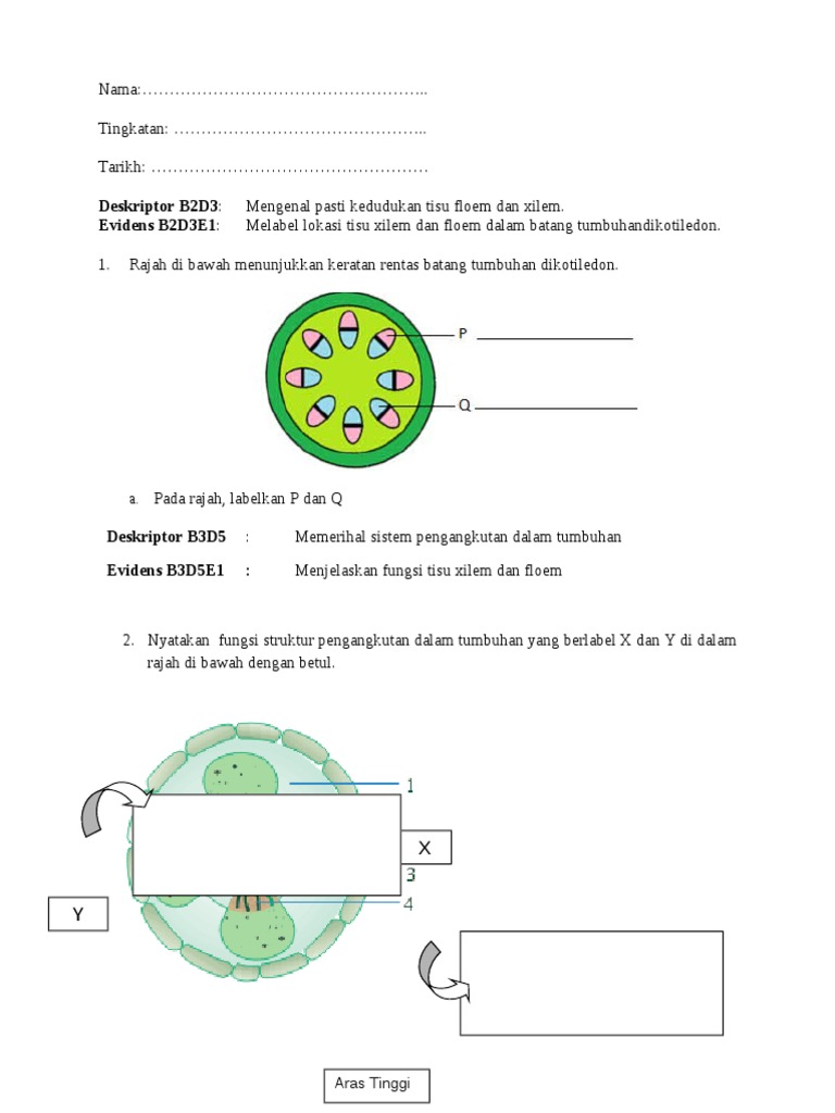 Rajah 2 menunjukkan keratan rentas batang tumbuhan yang terlibat dalam sistem pengangkutan. Human translations with examples.